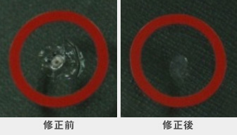 A 傷のサイズが修理できる範囲の場合でも、お客様の方で接着剤を入れられたり、市販の修理キットで修理を試みた後の場合、接着剤(レジン)が入らないので修理できません。その場合は一度ご連絡ください。